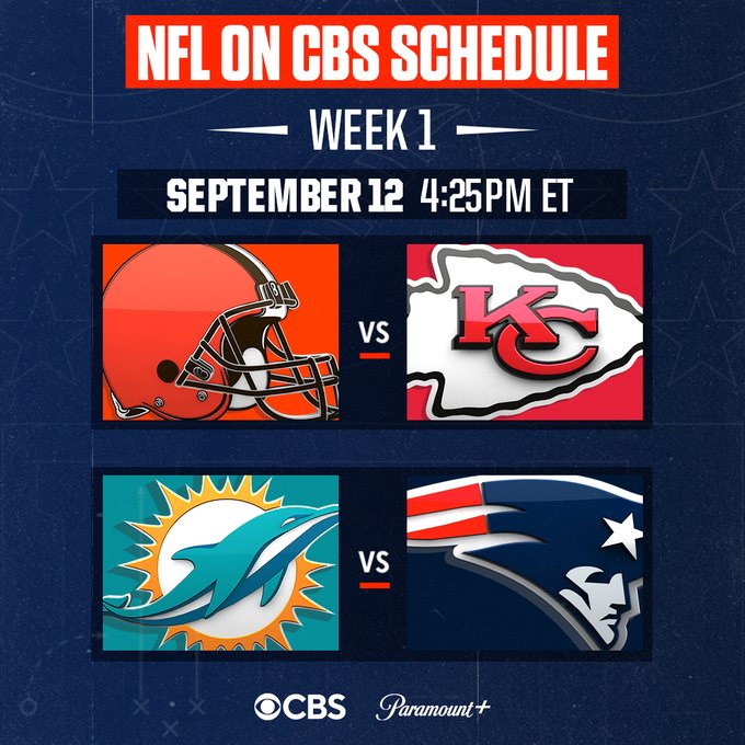 Week 4 of the 2022 NFL season kicked off Thursday with an AFC showdown between the Miami Dolphins and Cincinnati Bengals. Pittsburgh Steelers 1-2 Kickoff. The headliner of CBS Week 1 coverage is a playoff rematch from last season with the.
